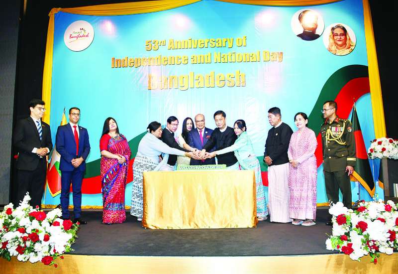 ဘင်္ဂလားဒေ့ရှ်နိုင်ငံ၏ (၅၃) နှစ်မြောက် လွတ်လပ်ရေးနေ့နှင့် အမျိုးသားနေ့အထိမ်းအမှတ် ဧည့်ခံပွဲအခမ်းအနားကို ယနေ့ညပိုင်းတွင် ရန်ကုန်မြို့ Lotte Hotel ၌ ကျင်းပသည်။