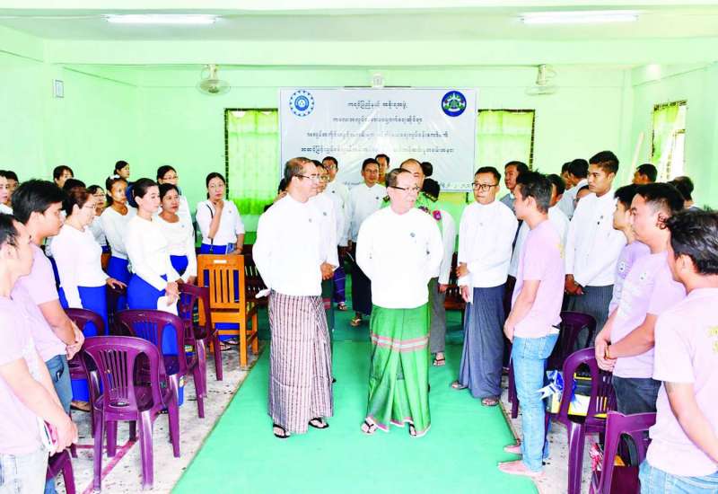 အိမ်တွင်းလျှပ်စစ် သွယ်တန်းတပ်ဆင်ခြင်း သင်တန်းဆင်းပွဲ အခမ်းအနားကို ယနေ့တွင် ကရင်ပြည်နယ် ဘားအံမြို့ ကျွမ်းကျင်မှုလေ့ကျင့်ရေး သင်တန်းကျောင်း၌ကျင်းပရာ ကရင်ပြည်နယ်အစိုးရအဖွဲ့ဝန်ကြီးချုပ် ဦးစောမြင့်ဦး၊ အလုပ်သမားဝန်ကြီးဌာန ဒုတိယဝန်ကြီး ဦးဝင်းရှိန်နှင့် ကရင်ပြည်နယ်အစိုးရအဖွဲ့ လူမှုရေးဝန်ကြီး၊ ပြည်နယ်အဆင့် ဌာနဆိုင်ရာများနှင့် တာဝန်ရှိသူများ တက်ရောက်ကြသည်။