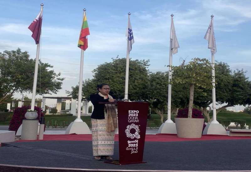 ကာတာနိုင်ငံ၊ ဒိုဟာမြို့တွင် ကျင်းပလျက်ရှိသော Expo 2023 Dohaတွင် စီးပွားရေးနှင့် ကူးသန်းရောင်းဝယ်ရေးဝန်ကြီးဌာန၊ မြန်မာကုန်သွယ်မှုမြှင့်တင်ရေးအဖွဲ့၏ ကြီးကြပ်ကွပ်ကဲမှုဖြင့် မြန်မာပြခန်းဆောင်ကို ပါဝင်ပြသလျက်ရှိပြီးExpo 2023 Doha ၏ မြန်မာနေ့အခမ်းအနားကို ယနေ့တွင် ကာတာနိုင်ငံ၊ ဒိုဟာမြို့၊ AI B Park ရှိ Expo House ၌ ကျင်းပရာ စီးပွားရေးနှင့် ကူးသန်းရောင်းဝယ်ရေးဝန်ကြီးဌာန၊ မြန်မာကုန်သွယ်မှုမြှင့်တင်ရေးအဖွဲ့ ညွှန်ကြားရေးမှူးချုပ် ဒေါ်နော်မူတာကပေါ၊ Expo 2023 Doha ၏ Secretary General Mr. Mohamed alkoori နှင့် ပြပွဲတွင် ပါဝင်ပြသသည့် နိုင်ငံများမှ Commissioner General များ တက်ရောက်ကြသည်။