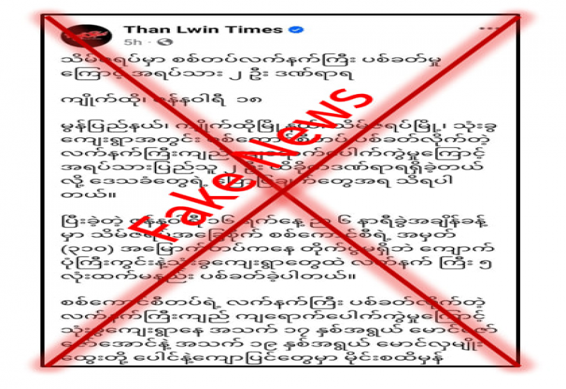 မွန်ပြည်နယ်၊ ဘီးလင်းမြို့နယ်၊ ဝင်းတာပန်ကျေးရွာအနီးသို့ ဇန်နဝါရီလ ၁၅ ရက်နေ့ ည ၈ နာရီအချိန်ခန့်က တပ်မတော်မှလက်နက်ကြီးပစ်ခတ်ခဲ့သည့်အတွက် ဘုန်းကြီးကျောင်းနှင့် စေတီတစ်ဆူ လက်နက်ကြီးစထိမှန်ခဲ့ကြောင်း ကောလာဟလ သတင်းတု၊ သတင်းမှားများကို အကြမ်းဖက်အားပေးပြည်ဖျက်မီဒီယာများက လူမှုကွန်ရက်ပေါ်တွင် ရေးသားဖြန့်ဝေနေသည်ကို တွေ့ရှိရသည်။
