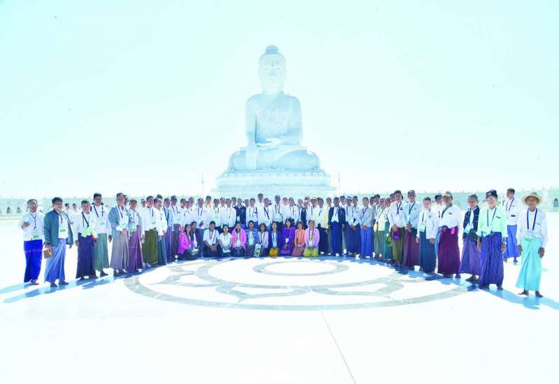 မန္တလေးတိုင်းဒေသကြီးအတွင်းရှိ ဘုရားစေတီများမှ ဘဏ္ဍာတော်ထိန်းဂေါပကအဖွဲ့ဝင် ၁၀၇ ဦးနှင့် ပဲခူးတိုင်းဒေသကြီးအတွင်းရှိ ဘုရားစေတီများမှ ဘဏ္ဍာတော်ထိန်း ဂေါပကအဖွဲ့ဝင် ၁၀၈ ဦးတို့သည် ယနေ့နံနက်ပိုင်းတွင် ပြည်ထောင်စုနယ်မြေ နေပြည်တော်ဒက္ခိဏသီရိမြို့နယ်ရှိ ဗုဒ္ဓဥယျာဉ်ဝတ္ထုကံတော်တွင် တည်ထားပူဇော်သည့် ကမ္ဘာပေါ်ရှိ ထိုင်တော်မူကျောက်ဆစ်ဗုဒ္ဓရုပ်ပွားတော်များအနက် ဉာဏ်တော်အမြင့်ဆုံးဖြစ်သည့် မာရဝိဇယဗုဒ္ဓရုပ်ပွားတော်မြတ်ကြီးအား လာရောက်ဖူးမြော်ကြည်ညိုကြသည်။