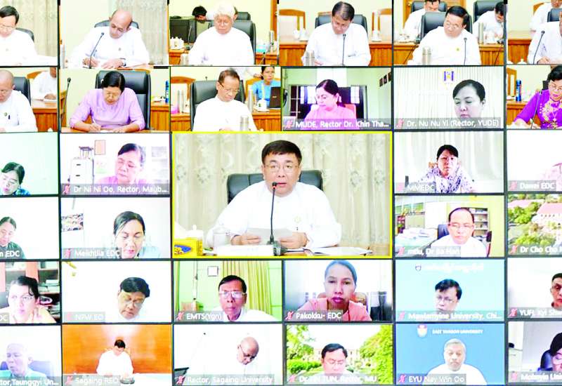 ပညာရေးဝန်ကြီးဌာန ပြည်ထောင်စုဝန်ကြီး ဒေါက်တာညွန့်ဖေသည် ယနေ့နံနက်ပိုင်းတွင် နေပြည်တော် ပညာရေးဝန်ကြီးဌာန ရုံးအမှတ်(၁၃)ရှိ အစည်းအဝေးခန်းမ၌ တက္ကသိုလ်ပါမောက္ခချုပ်များ၊ ပညာရေးဒီဂရီကောလိပ်ကျောင်းအုပ်ကြီးများနှင့် တိုင်းဒေသကြီး/ ပြည်နယ်ပညာရေးမှူးများနှင့် တွေ့ဆုံသည်။