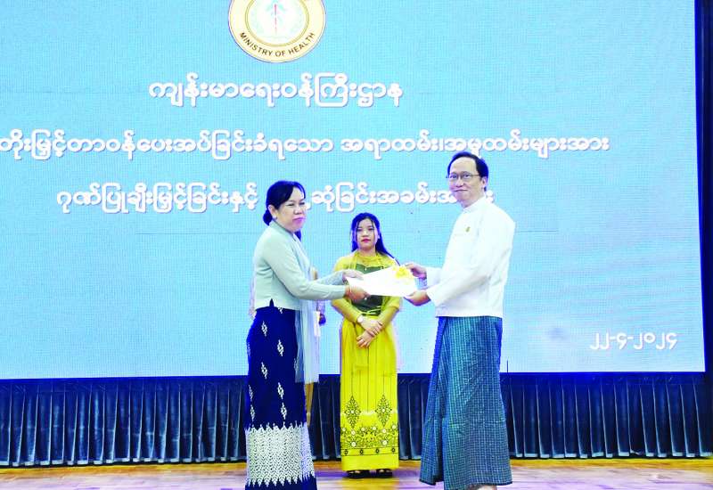 ကျန်းမာရေးဝန်ကြီးဌာန ရာထူးတိုးမြှင့် တာဝန်ပေးအပ်ခြင်းခံရသော အရာထမ်း၊ အမှုထမ်းများအား ဂုဏ်ပြုချီးမြှင့်ခြင်း အခမ်းအနားကို ယနေ့မွန်းလွဲပိုင်းတွင် နေပြည်တော်ရှိ ကျန်းမာရေးဝန်ကြီးဌာန အစည်းအဝေးခန်းမ၌ ကျင်းပသည်။