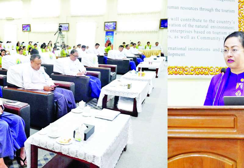 ပြည်ပနိုင်ငံများသို့ ကိုယ်စားလှယ်များအဖြစ် သွားရောက်၍ရရှိခဲ့သည့် အတွေ့အကြုံများ ရှင်းလင်းတင်ပြခြင်းအခမ်းအနားကို ယနေ့မွန်းလွဲပိုင်းတွင် နေပြည်တော်ရှိ ဟိုတယ်နှင့်ခရီးသွားလာရေးဝန်ကြီးဌာန ကျောက်စိမ်းခန်းမ၌ ကျင်းပရာ ပြည်ထောင်စုဝန်ကြီး ဒေါက်တာသက်သက်ခိုင်၊ ဒုတိယဝန်ကြီး ဦးဖြိုးဇော်စိုး၊ အမြဲတမ်းအတွင်းဝန်၊ ဒုတိယအမြဲတမ်းအတွင်းဝန်နှင့် ဒုတိယညွှန်ကြားရေးမှူးချုပ်များ၊ အရာထမ်းအမှုထမ်းများ တက်ရောက်ကြပြီး နယ်ရုံးခွဲများမှ အရာထမ်းအမှုထမ်းများက ဗီဒီယိုကွန်ဖရင့်စနစ်ဖြင့် တက်ရောက်ကြသည်။