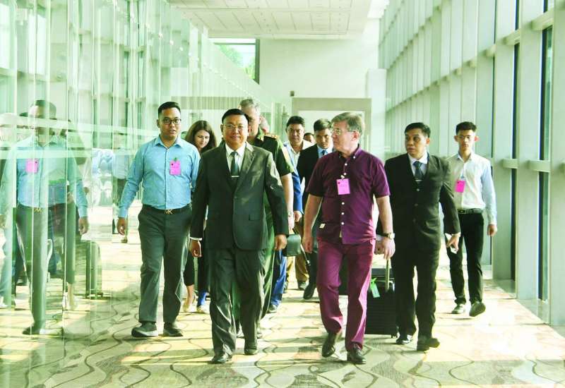 ဒုတိယဝန်ကြီးချုပ်နှင့် နိုင်ငံခြားရေးဝန်ကြီးဌာန ပြည်ထောင်စုဝန်ကြီး ဦးသန်းဆွေသည် တာဝန်ပြီးဆုံး၍ ပြန်လည်ထွက်ခွာတော့မည့် ကမ္ဘောဒီးယားနိုင်ငံသံအမတ်ကြီး မစ္စတာ ကျုံမ် အန်းဗွီကြတ် (Mr.CHUM Angvichet) အား ယနေ့မွန်းလွဲ ၃ နာရီ တွင် နေပြည်တော်ရှိ နိုင်ငံခြားရေးဝန်ကြီး ဌာန၌ လက်ခံတွေ့ဆုံသည်။