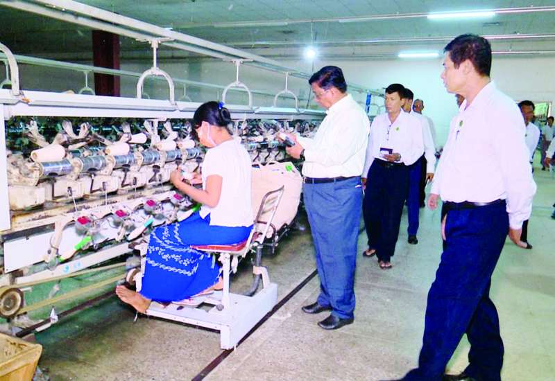စက်မှုဝန်ကြီးဌာန ပြည်ထောင်စုဝန်ကြီး ဒေါက်တာချာလီသန်းသည် ယနေ့နံနက်ပိုင်းတွင် မန္တလေးတိုင်းဒေသကြီး ပျော်ဘွယ်မြို့ရှိ အမှတ် (၈) အထည်စက်ရုံ (ပျော်ဘွယ်) သို့ ရောက်ရှိရာ စက်ရုံမှူးက စက်ရုံဆိုင်ရာ အချက်အလက်များ၊ စက်ပစ္စည်းကိရိယာများ တပ်ဆင်ထားရှိမှု၊ လုပ်ငန်းလည်ပတ်အကောင်အထည် ဖော်ဆောင်ရွက်ခဲ့မှုနှင့် ဆက်လက်ဆောင်ရွက်မည့်အစီအမံ တို့ကို ရှင်းလင်းတင်ပြသည်။