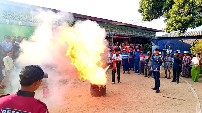 မြဝတီမြို့ ဘုရင့်နောင်စျေးကြီး၌ မီးဘေးအန္တရာယ်ကြိုတင် ကာကွယ်ရေးဇာတ်တိုက်လေ့ကျင့်မှု သရုပ်ပြပွဲ ကျင်းပ
