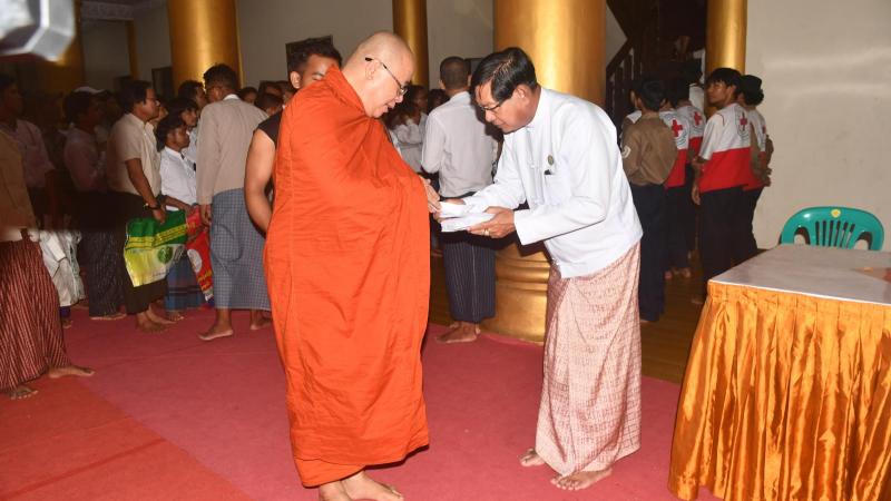 ရန်ကုန်တိုင်းဒေသကြီးဝန်ကြီးချုပ် (ဂိုဏ်းပေါင်းစုံ) သံဃနာယကနှင့်ဝိနည်းဓိုရ်သင်တန်းဆင်း အောင်လက်မှတ် ဆက်ကပ်ချီးမြှင့်ပွဲနှင့် ဆွမ်းဆန်စိမ်းလောင်းလှူပွဲ တက်ရောက်