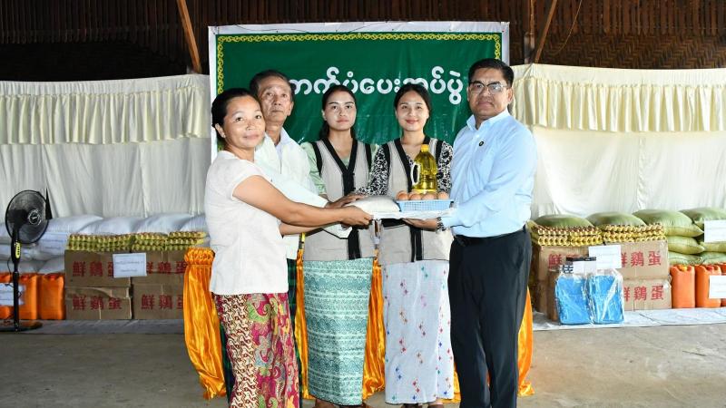 မြစ်ကြီးနားမြို့နယ် ရွှေစက်ရပ်ကွက်နှင့် နောင်နန်းကျေးရွာအုပ်စုအတွင်းရှိ ယာယီနေရပ်စွန့်ခွာစခန်းနေမိသားစုများအား ဆန်ရိက္ခာနှင့် စားသောက်ကုန်ပစ္စည်းများ ထောက်ပံ့