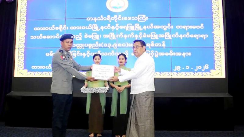 ထားဝယ်မြို့နယ်နှင့်ရေဖြူမြို့နယ်အတွင်း တရားမဝင်သယ်ဆောင်လာသည့် ခဲမဖြူ၊ အဖြိုက်နက် ၁၄ တန်ခန့် ဖမ်းဆီးရမိမှုနှင့်စပ်လျဉ်း၍ သတင်းပေးသူ၊ ဖမ်းဆီးသူများအား ဆုချီးမြှင့်