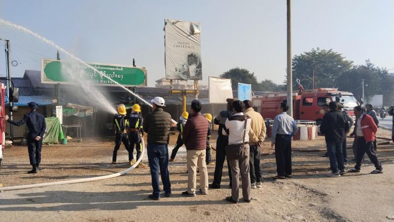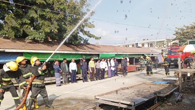 လဲချားမြို့နယ်တွင် မီးဘေးလုံခြုံရေး ဇတ်တိုက်လက်တွေ့သရုပ်ပြခြင်း ဆောင်ရွက်