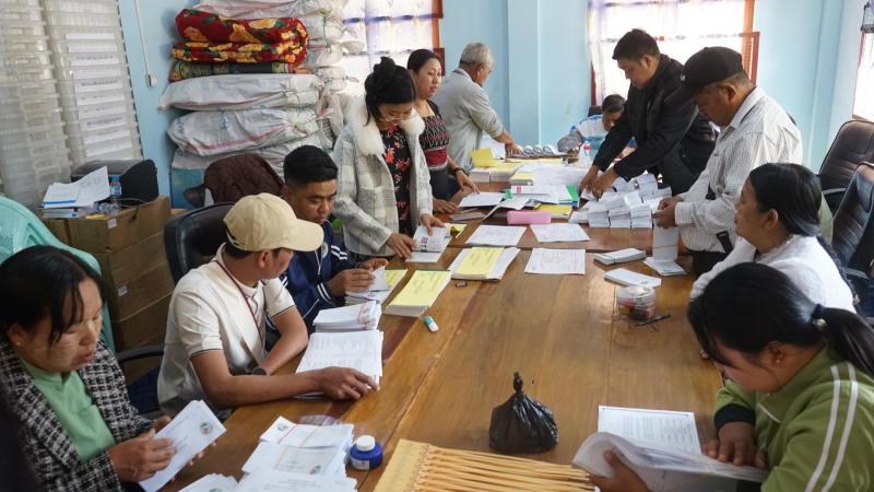 နမ့်စန်မြို့နယ်တွင် ရပ်/ကျေးရွေးကောက်ပွဲကော်မရှင်အဖွဲ့ခွဲများထံ ကြိုတင်ဆန္ဒမဲလက်မှတ်များ ထုတ်ပေးလျက်ရှိ