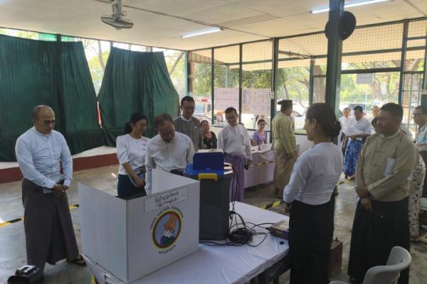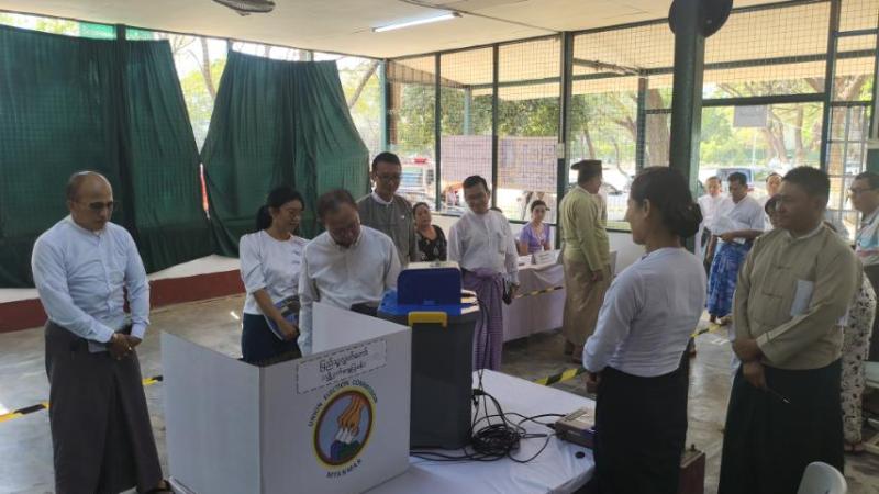 ပြည်ထောင်စုရွေးကောက်ပွဲကော်မရှင်ဥက္ကဋ္ဌ ဦးသန်းစိုး ပါတီစုံဒီမိုကရေစီအထွေထွေရွေးကောက်ပွဲ အပိုင်း(၃) ကျင်းပမည့် သာကေတမြို့နယ်အတွင်းရှိ မဲရုံများအား ကြည့်ရှုစစ်ဆေး