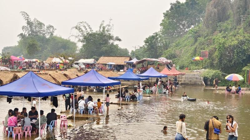 မိုင်းယုမြို့၊ အမှတ် ၁၀၀၈ နယ်ခြားတပ်ရင်းနှင့် နမ့်လွေချောင်းသောင်ပြင်တို့တွင် သင်္ကြန်အကြိုဖွင့်ပွဲ၌ ရေကစားသူများနှင့် လာလည်ပတ်သူများဖြင့် စည်ကား