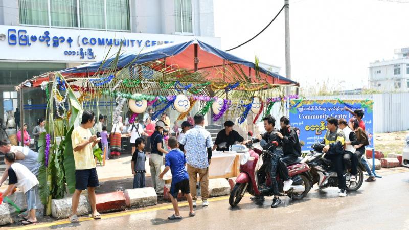 လားရှိုးမြို့တွင် မဟာသင်္ကြန်ပွဲတော် အကျနေ့ ရေကစားလည်ပတ်သူများအား လူထုအခြေပြုဗဟိုဌာန Community Centre မှ ရာသီစာ မုန့်လုံးရေပေါ်များ ပေးဝေ