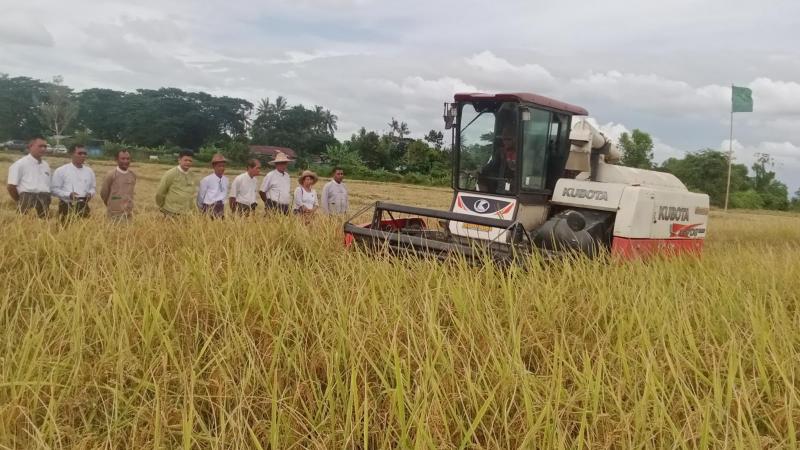 ဖြူးမြို့နယ်၌ မိုးစပါးအထွက်နှုန်း သိရှိစေရေး စံကွက်ရိတ်သိမ်း