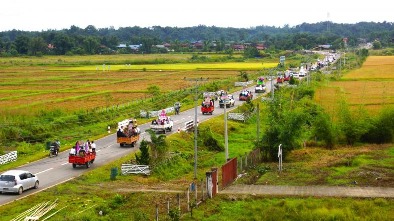 မြစ်သားမြို့တွင် ၁၃၈၇ခုနှစ်၊ (၈၈)ကြိမ်မြောက် တန်ဆောင်တိုင်ပွဲတော်ကြီးအား မြို့နယ်လုံးကျွတ် စုပေါင်းမဟာဘုံကထိန်ပဒေသာပင်များ စည်ကားသိုက်မြိုက်စွာ လှည့်လည်ကျင်းပ