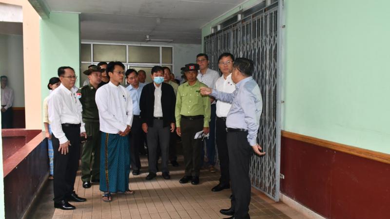 တနင်္သာရီတိုင်းဒေသကြီးအစိုးရအဖွဲ့ ဝန်ကြီးချုပ်ဦးမြတ်ကို၊ ကော့သောင်းမြို့၊ ပြည်သူ့ဆေးရုံ၌ ကျောက်ကပ်သန့်စင်စက်ထားရှိနိုင်ရေးကွင်းဆင်းကြည့်ရှု