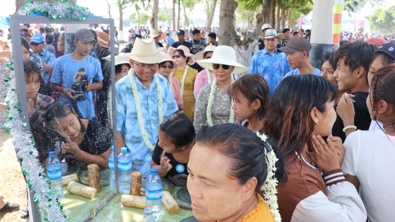 မိုင်းယုမြို့၊ အမှတ် ၁၀၀၈ နယ်ခြားတပ်ရင်းနှင့် နမ့်လွေချောင်းသောင်ပြင်တို့တွင် သင်္ကြန်အကြိုဖွင့်ပွဲ၌ ရေကစားသူများနှင့် လာလည်ပတ်သူများဖြင့် စည်ကား