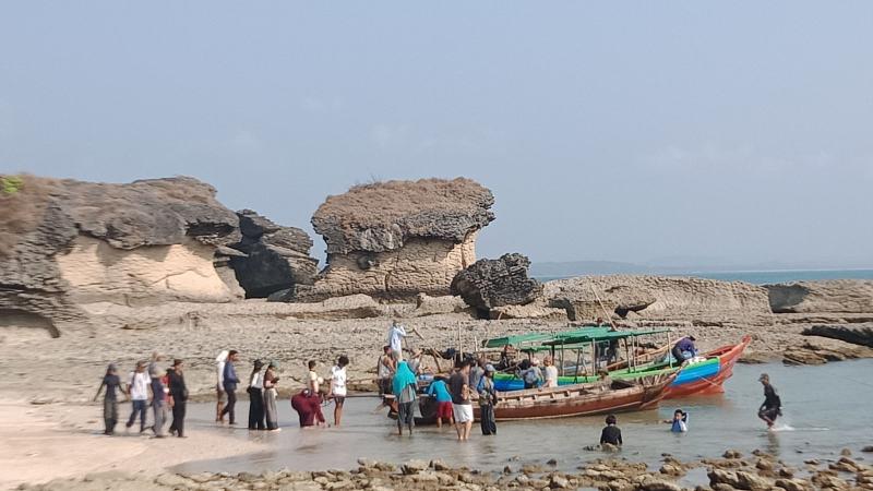 ဂေါ်ရန်ဂျီကျွန်းကမ်းခြေ၌ မဟာသင်္ကြန်အကြတ်နေ့တွင် ခရီးသွားဧည့်သည်များဖြင့် စည်ကားများပြား
