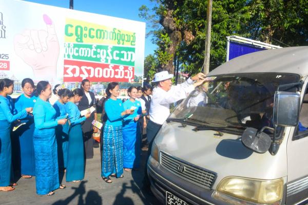 ဝိုင်းမော်မြို့နယ်၌ ပါတီစုံဒီမိုကရေစီ အထွေထွေရွေးကောက်ပွဲဆိုင်ရာ လက်ကမ်းစာစောင်များ ဖြန့်ဝေ