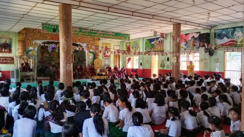 မြောက်ဥက္ကလာပမြို့နယ်၌ အစိုးရဓမ္မာစရိယစာမေးပွဲဖြေဆိုလျက်ရှိရာ တာ၀န်ရှိသူများက လှည့်လည်ကြည့်ရှု အားပေး