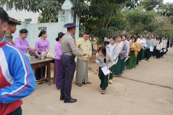 လဲချားမြို့တွင် တက္ကသိုလ်ဝင်တန်းစာမေးပွဲဖြေဆိုပြီးသည့် ကျောင်းသား/ကျောင်းသူများအား မုန့်နှင့်အချိုရည်များ လှူဒါန်း