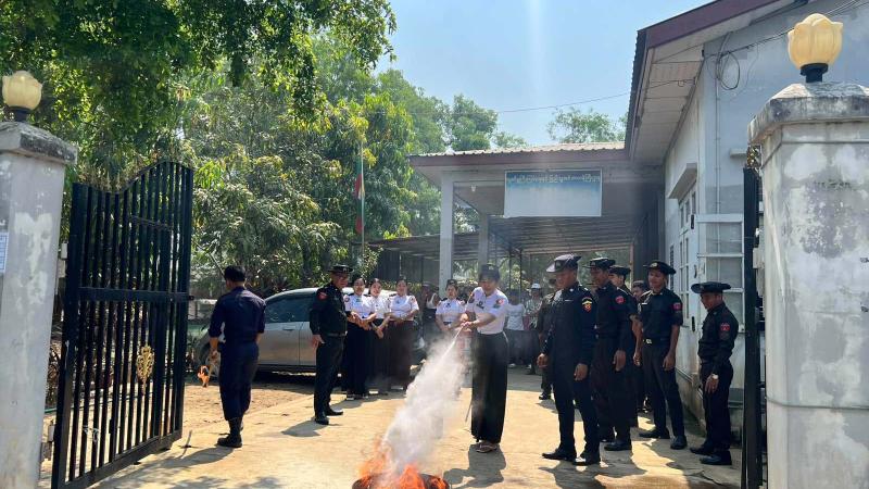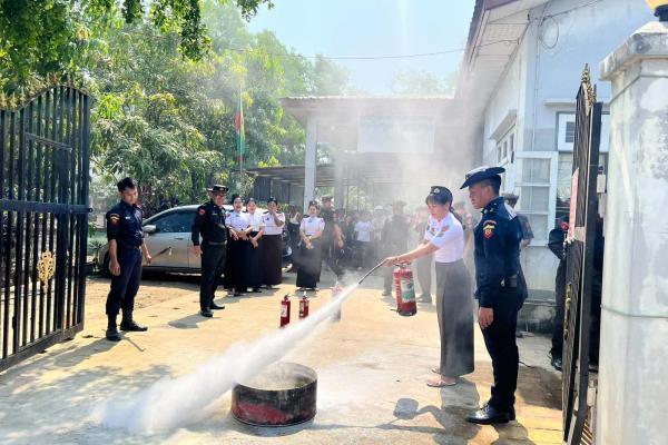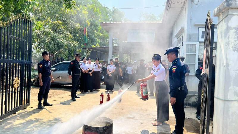 ထန်းတပင်မြို့နယ်၌ နိုင်ငံ့ဝန်ထမ်းများအား မီးငြှိမ်းသတ်နည်းများ လက်တွေ့ပြသဆောင်ရွက်ပေး