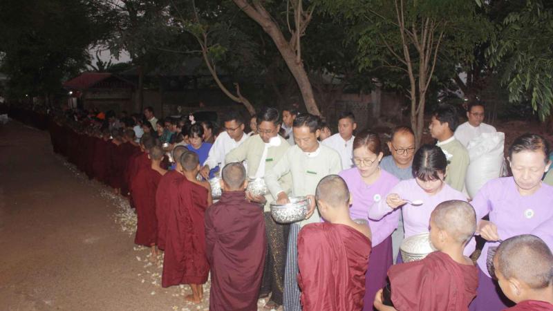 ရခိုင်ပြည်နယ်ဝန်ကြီးချုပ် ဦးနိုင်ဦးနှင့်ဇနီး၊ ပြည်နယ်အစိုးရအဖွဲ့ဝင်များ စစ်တွေမြို့ပေါ်ရှိ ဘုန်းတော်ကြီးကျောင်းများသို့ သွားရောက်၍ ဆွမ်းနှင့် လှူဖွယ်ဝတ္ထုပစ္စည်းများ ဆပ်ကပ်လှူဒါန်း