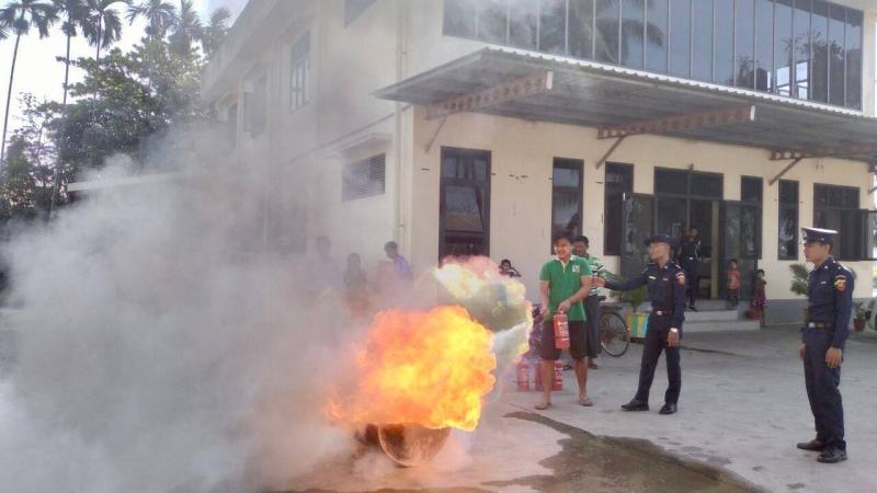 မြောင်းမြမြို့တွင် မီးဘေးလုံခြုံရေးအသိပညာပေးခြင်းနှင့် ဇာတ်တိုက်လေ့ကျင့်ခြင်းဆောင်ရွက်