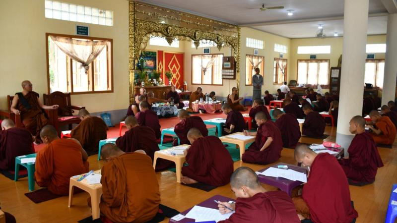 ရန်ကုန်တိုင်းဒေသကြီး၀န်ကြီးချုပ် မြောက်ဥက္ကလာပမြို့နယ်၌ အစိုးရဓမ္မာစရိယ စာမေးပွဲ ဖြေဆိုလျက်ရှိသည့် ဆရာတော်များအား ဖူးမြှော်ကြည်ညို