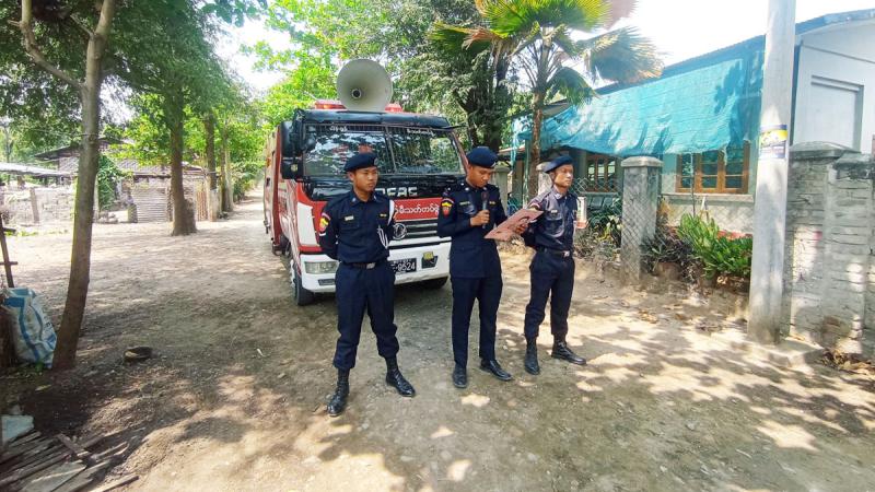 ငါန်းဇွန်မြို့ ပေါ်ရပ်ကွက်များအတွင်း မီးဘေးကြိုတင်ကာကွယ်ရေးနှင့် မီးသတိမူရေးအတွက်အသံချဲ့စက်ဖြင့် လှည့်လည်ဆော်ဩခြင်းဆောင်ရွက်