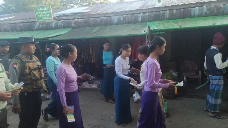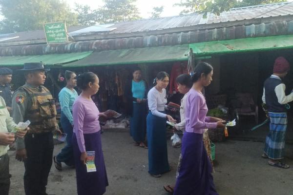 မချမ်းဘောမြို့နယ်၌ ရွေးကောက်ပွဲနှိုးဆော်ရေး အသိပညာပေး သတင်းစကား လက်ကမ်းစာစောင်များ ဖြန့်ဝေ