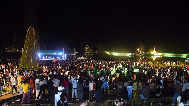 မြန်မာနိုင်ငံ၏ ခရီးသွားမြို့တော် ( ပြင်ဦးလွင်) ရှိ အမျိုးသားကန်တော်ကြီး ဥယျာဉ်အတွင်း ခရီးသွားအပန်းဖြေလည်ပတ်သူများ စည်ကားများပြား