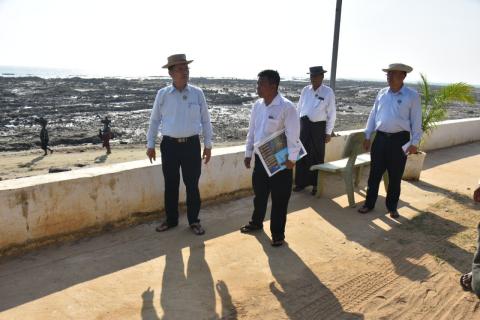 ဧရာဝတီတိုင်းဒေသကြီးဝန်ကြီးချုပ် ဦးတင်မောင်ဝင်းသည် မြတ်မော်တင်စွန်းစေတီတော် ကုန်းမြေအောက်ခြေအား ပင်လယ်ရေလှိုင်းရိုက်ခတ်မှုမှကာကွယ်ရန် ဆောင်ရွက်ထားသည့် ကျောက်စီလှိုင်းကာအား ယခုလ (၁၅) ရက်နေ့ မွန်းလွဲပိုင်းက သွားရောက်ကြည့်ရှုစစ်ဆေးခဲ့ရာ ရေအရင်းအမြစ်နှင့် မြစ်ချောင်းများဖွံ့ဖြိုးတိုးတက်ရေးဦးစီးဌာန၊ တိုင်းဒေသကြီးဦးစီးမှူးက ကျောက်စီလှိုင်းကာ အလျား ၄၅၇ ပေ ဆောင်ရွက်ထားရှိမှုအခြေအနေနှင့် ရေဆင်းမြောင်းများ ဆောင်ရွက်သင့်သည့်အခြေအနေများအား ရှင်းလင်းတင်ပြရာ ဝန်ကြီးချုပ်က စေတီတော်ကြီးတည်ထားရာကုန်းမြေအား ပင်လယ်ရေလှိုင်းရိုက်ခတ်မှုမှကာကွယ်ရန် လိုအပ်သည့်နေရာများတွင် ဆက်လက်ဆောင်ရွက်ရန် မှာကြားသည်။
