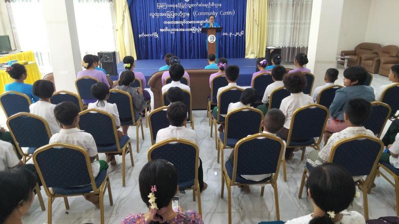 နတ်မောက်မြို့ လူထုအခြေပြုဗဟိုဌာန(Community Centre)ခန်းမတွင် ကလေးအလုပ်သမားပပျောက်ရေး အသိပညာပေးဟောပြောပွဲနှင့် ဆုချီးမြှင့်ပွဲ ကျင်းပ