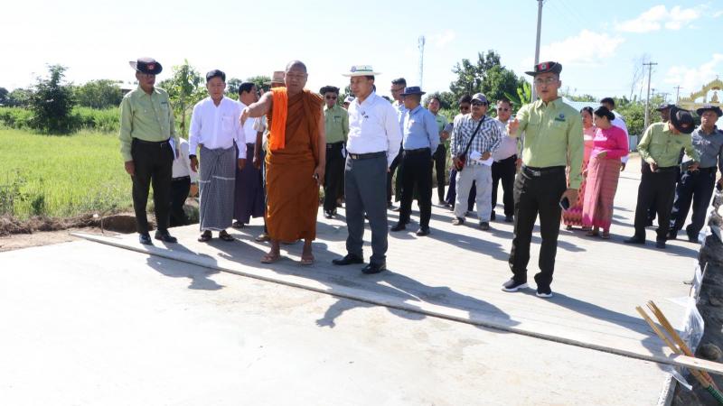 မကွေးတိုင်းဒေသကြီးဝန်ကြီးချုပ် မြို့သစ်မြို့နယ် ရေပြည့်ကျေးရွာ၌ ကျေးရွာတွင်းကွန်ကရစ်လမ်းဖွင့်ပွဲအခမ်းအနား တက်ရောက်