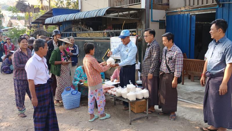 မြန်အောင်ဆီကုန်သည်နှင့် ဆီလုပ်ငန်းရှင်များအသင်းမှ စားအုန်းဆီနှင့် ဆန်များကို သက်သာသောစျေးနှုန်းဖြင့်ရောင်းချ