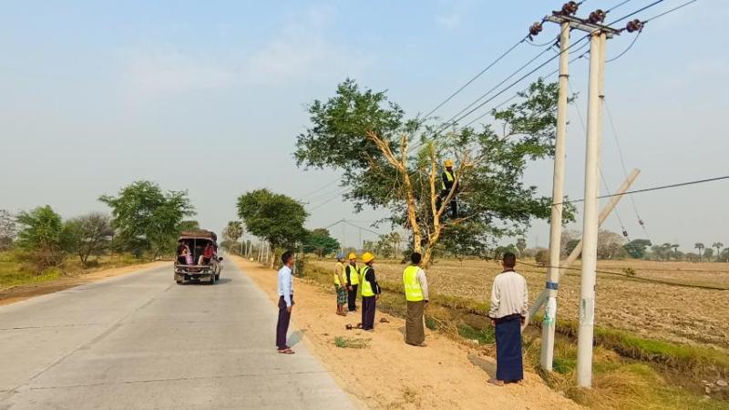 မြစ်သားမြို့နယ် လျှပ်စစ်ရုံးမှ ဝန်ထမ်းများက ရပ်ကွက် (၁) ရပ်ကွက်နှင့် ကျေးရွာ (၁၉) ရွာမှ ပြည်သူများ ဓာတ်အားပြည့်ဝစွာသုံးစွဲနိုင်ရေး သစ်ပင်သစ်ကိုင်းများ ခုတ်ထွင်ရှင်းလင်း