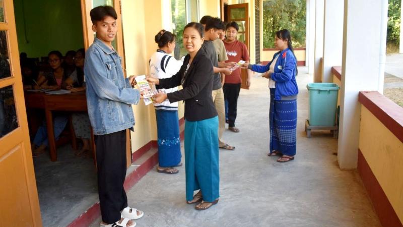 ချောက်မြို့၌ “ဒို့အတူတူမဲပေးကြမယ်”လက်ကမ်းစာစောင်များ ဖြန့်ဝေခြင်းနှင့် နံရံကပ်စာစောင်များ ပြသ