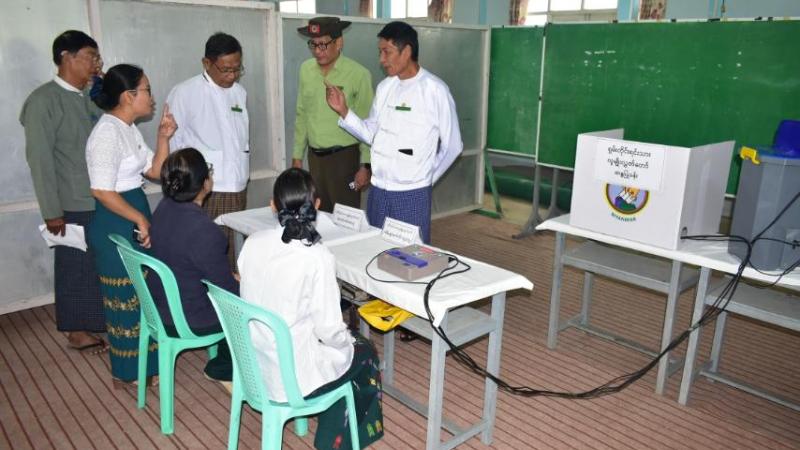ချမ်းအေးသာစံမြို့နယ် အမှတ်(၅) အခြေခံပညာအထက်တန်းကျောင်း၌ မဲရုံပြင်ဆင်ထားရှိမှုနှင့် မဲပေးသရုပ်ပြပွဲ အခမ်းအနားကျင်းပ