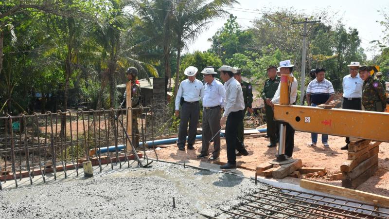 ဧရာဝတီတိုင်းဒေသကြီးဝန်ကြီးချုပ်သည် မြတ်မော်တင်စွန်းစေတီတော်ကုန်းမြေအောက်ခြေအား ပင်လယ်ရေလှိုင်းရိုက်ခတ်မှုမှကာကွယ်ရန် ဆောင်ရွက်ထားသည့် ကျောက်စီလှိုင်းကာအာကြည့်ရှုစစ်ဆေး