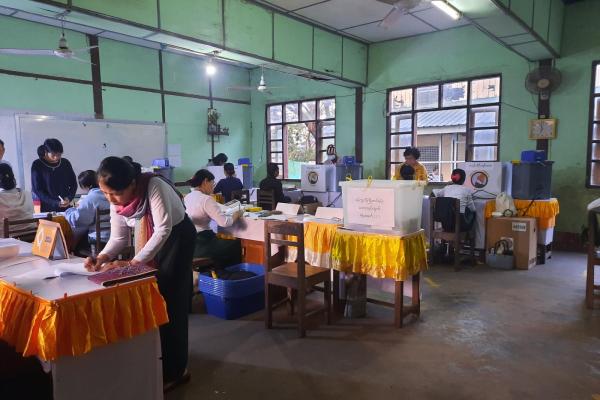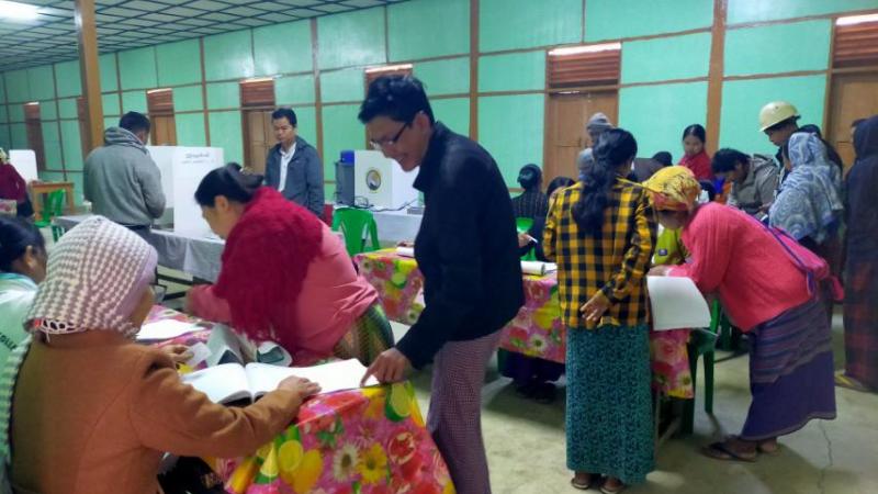 ကွန်ဟိန်းမြို့၌ ပြည်သူများ ဆန္ဒမဲလာပေးနေမှုအား တာဝန်ရှိသူများ ကြည့်ရှုအားပေး