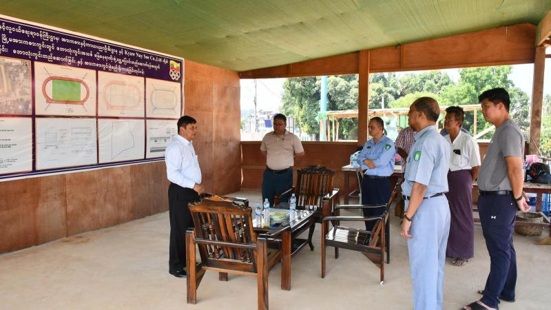 တနင်္သာရီတိုင်းဒေသကြီး လမ်းပန်းဆက်သွယ်ရေးဝန်ကြီး မြိတ်မြို့ မြို့မအားကစားကွင်းတွင် ဘောလုံးကွင်းအသစ် မြေနေရာတိုးချဲ့ ရွှေ့ပြောင်းဆောက်လုပ်နေမှုအား ကြည့်ရှုစစ်ဆေး