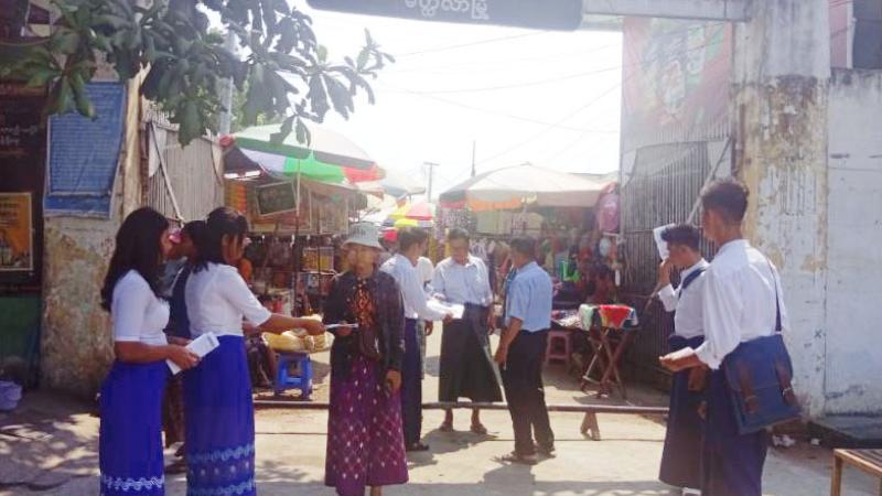 မချမ်းဘောမြို့၌ ရွေးကောက်ပွဲနှိုးဆော်ရေး “ဒို့အတူတူမဲပေးကြမယ်” မြေစိုက်ပိုစတာစိုက်ထူခြင်းနှင့် လက်ကမ်းစာစောင်များ ဖြန့်ဝေ