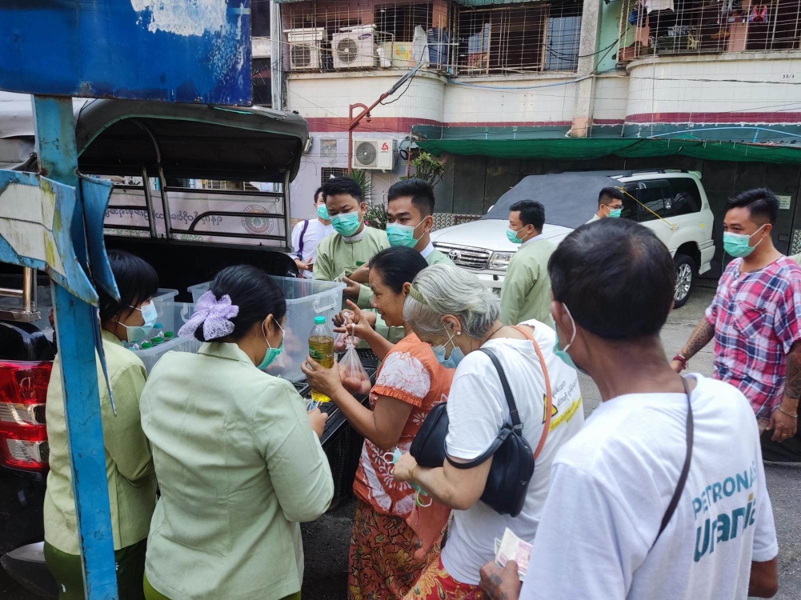 ထိုသို့ ရောင်းချရာတွင် ကိုဗစ်-၁၉ ရောဂါဆိုင်ရာညွှန်ကြားချက်များနှင့်အညီ လိုက်နာမှုရှိစေရေးနှင့် ပြည်သူများအဆင်ပြေချောမွေ့စွာဝယ်ယူနိုင်ရေးတို့အတွက် လှိုင်မြို့နယ်အုပ်ချုပ်ရေးစစ်ကြောင်းမှဦးဆောင်၍ ကြီးကြပ်ကူညီဆောင်ရွက်ပေးလျက်ရှိကာ တရားဥပဒေစိုးမိုးရေးစစ်ကြောင်း၊ ကျန်းမာရေးစစ်ကြောင်းတို့တွင်ပါဝင်သည့် ဌာနဆိုင်ရာများက နေအိမ်ပြင်ပထွက်ခွာသည့်အခါတိုင်း ပါးစပ်နှင့်နှာခေါင်းစည်းကို စနစ်တကျတပ်ဆင်သည့် အလေ့အကျင့်ကောင်းများ ဆက်လက်လိုက်နာ ကျင့်သုံးနိုင်ရေးအတွက် ပါးစပ်နှင့်နာခေါင်းစည်းများ တပ်ဆင်ရေး လှုပ်ရှားမှုပြုလုပ်ပြီး နှာခေါင်းစည်းများကို အခမဲ့ဖြန့်ဝေပေးခဲ့ကြောင်း သိရသည်။