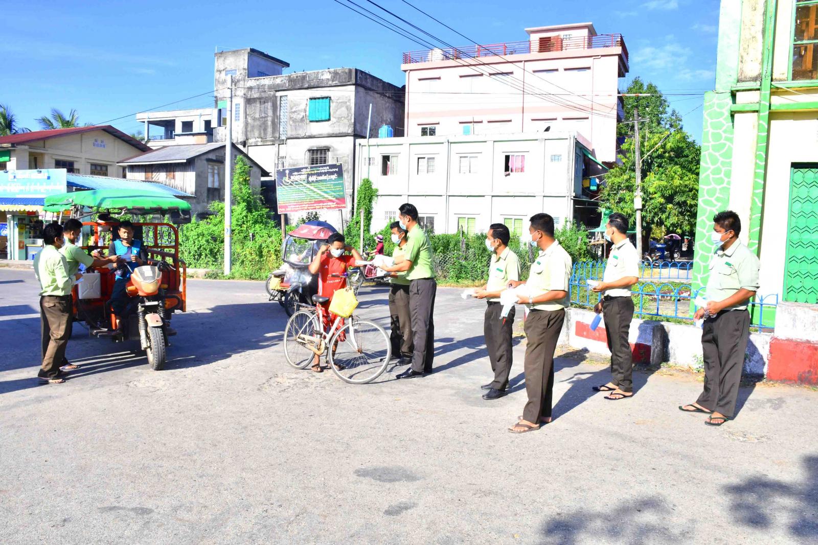 ရခိုင်ပြည်နယ်၊ ကျောက်ဖြူမြို့နယ်အတွင်းရှိ ပြည်သူများအား ကိုဗစ်-၁၉ ရောဂါကူးစက်မှု မရှိစေရန်နှင့် ကြိုတင်ကာကွယ်မှုများ ပြုလုပ်နိုင်ရန်အတွက် ယနေ့နံနက်ပိုင်းက မြို့နယ်အထွေထွေအုပ် ချုပ်ရေးဦးစီးဌာနရုံး ဝန်ထမ်းများက အလယ်ပိုင်းရပ်ကွက်ရှိ နာရီစင်ရှေ့လမ်းဆုံသို့ သွားရောက်၍ ကိုဗစ်-၁၉ ရောဂါကြိုတင်ကာကွယ်ရေး Mask Campaign ဆောင်ရွက်ခဲ့ကြသည်။