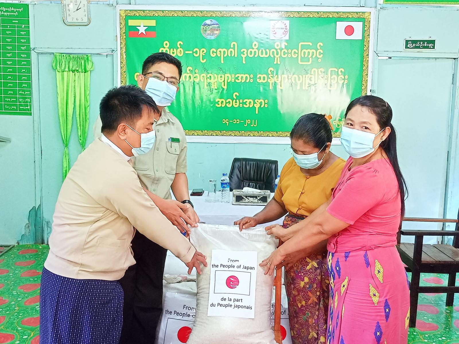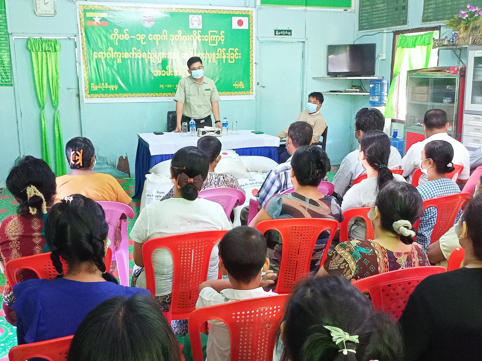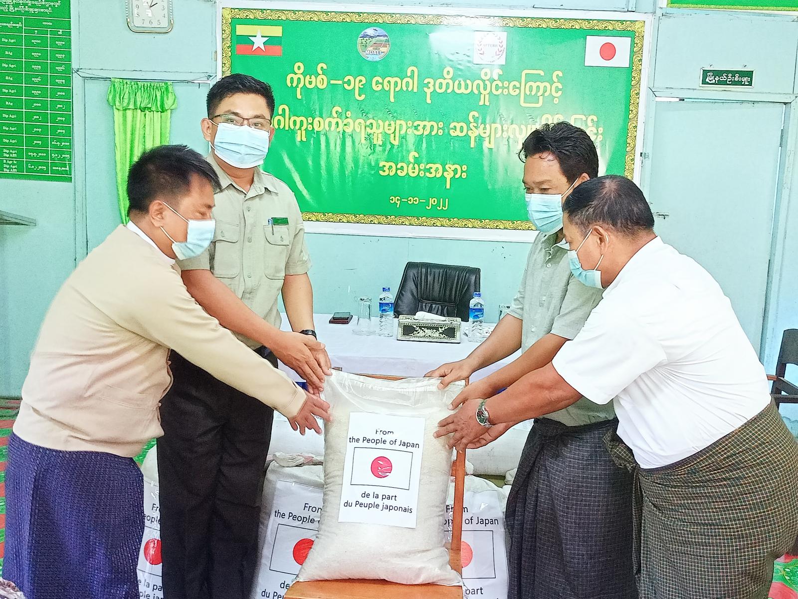 ရခိုင်ပြည်နယ်၊ မြောက်ဦးခရိုင်၊ မြေပုံမြို့နယ်တွင် ကိုဗစ်-၁၉ ရောဂါ(ဒုတိယလှိုင်း)ကြောင့် ရောဂါကူးစက်ခံရသူများအား APTERR- Tire-3 အစီအစဉ်အရ ဂျပန်နိုင်ငံမှလှူဒါန်းသော ဆန်များ ထောက်ပံ့ပေးအပ်ပွဲကို ယမန်နေ့ညနေ(၂)နာရီအချိန်တွင် မြို့နယ်စိုက်ပျိုးရေးဦးစီးဌာန အစည်း အဝေးခန်းမ၌ပြုလုပ်သည်။