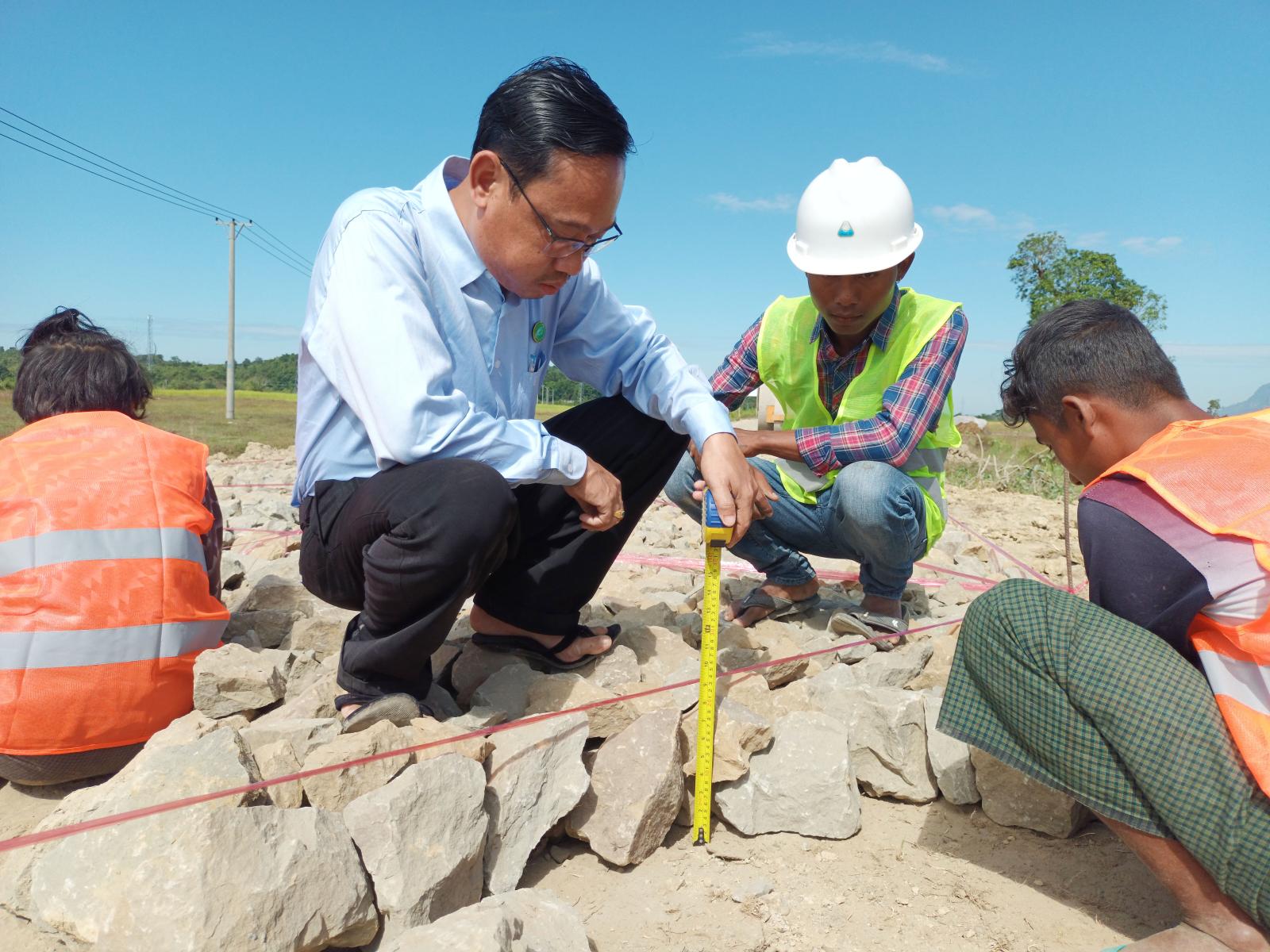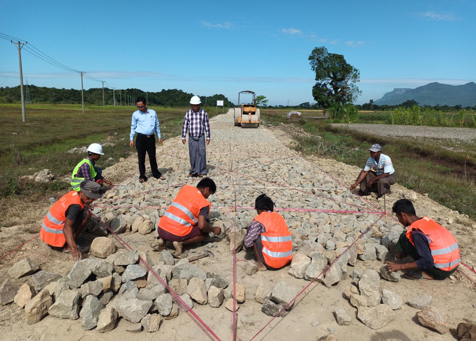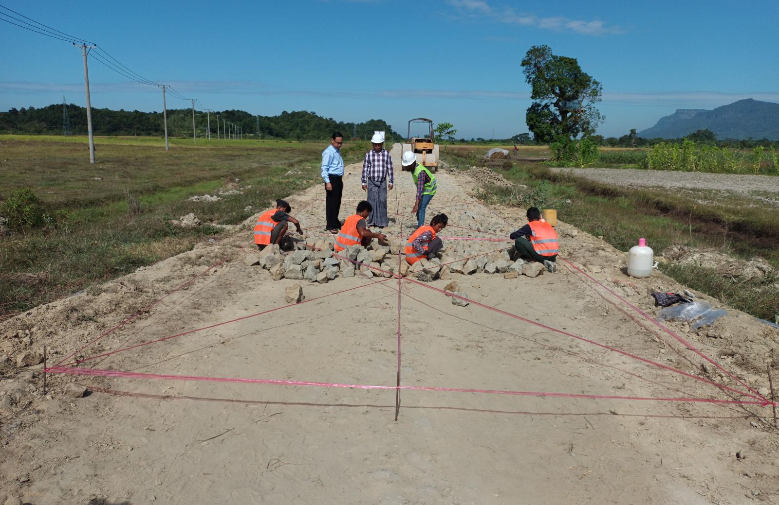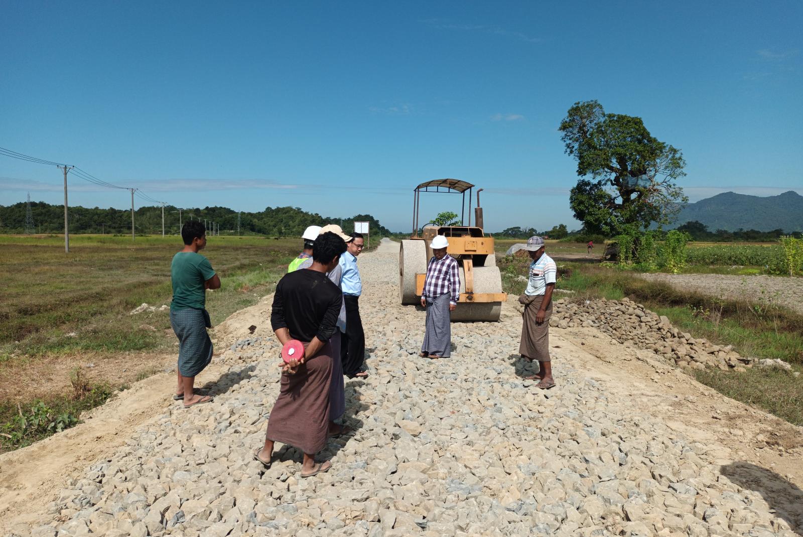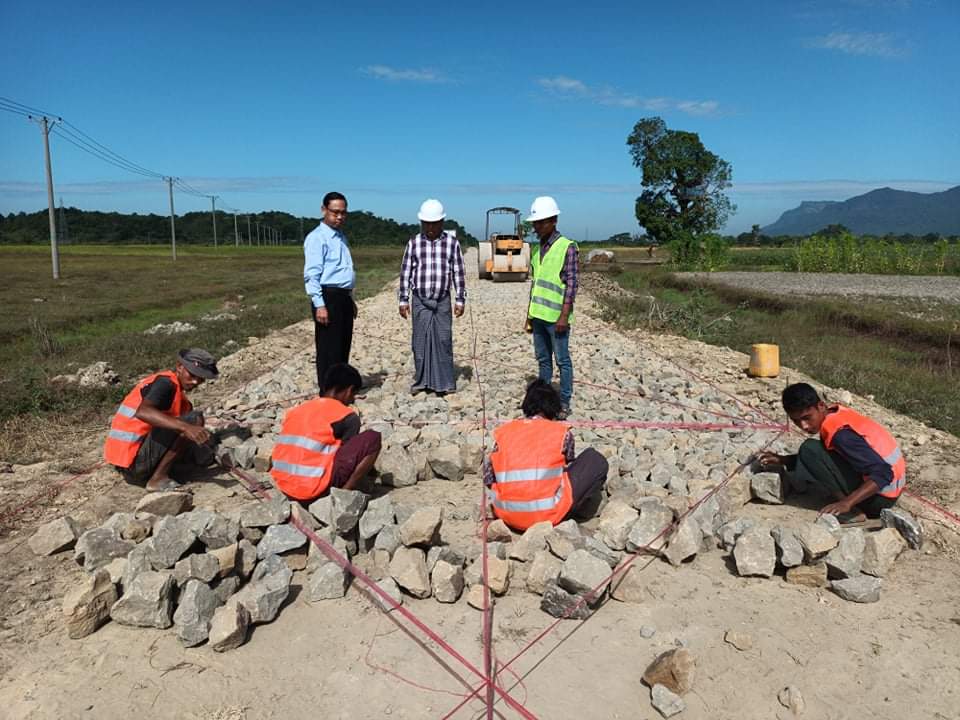 ရခိုင်ပြည်နယ် မောင်တောမြို့၌ ကျေးလက်လမ်းများအား ရာသီမရွေးသွားလာနိုင်သော လမ်းများအဖြစ် အဆင့်မြင့်တင်ဆောင်ရွက်ရေးစီမံချက်အရကျေးရွာချင်းဆက်လမ်းများအား Paved Road အဖြစ် ဆောင်ရွက်လျက်ရှိရာ မြို့နယ်ကျေးလက်လမ်းဖွံ့ဖြိုးရေးဦးစီးဌာန ၂၀၂၂-၂၀၂၃ ခု ဘဏ္ဍာရေးနှစ်တွင် ရခိုင်ပြည်နယ်အစိုးရအဖွဲ့ ငွေလုံးငွေရင်း ရန်ပုံငွေဖြင့် ကျော်ထက် ကုမ္ပဏီမှ တာဝန်ယူဆောင်ရွက် လျက်ရှိသော နွားရုံတောင်နှင့် ငွေတောင်ကျေးရွာချင်းဆက်လမ်း ကွန်ကရစ်ခြင်းခြင်းလုပ်ငန်းမှ ဒုအခြေခံလွှာ ခွဲကျောက်ခင်းကြိတ်လုပ်ငန်း ဆောင်ရွက်နေမှုအခြေအနေများအား မြို့နယ်ကျေးလက်လမ်း ဖွံ့ဖြိုးရေးဦးစီးဌာန ဦးစီးအရာရှိ(မြို့ပြ) ဦးခင်မောင်ဦးနှင့် တာဝန်ရှိသူများက ကွင်းဆင်းစစ်ဆေး ဆောင်ရွက်ခဲ့သည်။