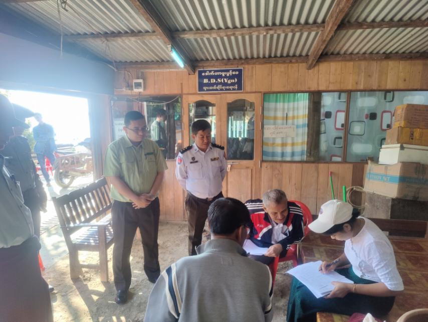 ထိုသို့ မြေပြင်အိမ်ထောင်စုလူဦးရေစာရင်း ကွင်းဆင်းကောက်ယူမှု အခြအနေတို့ကို မြို့နယ်စီမံအုပ်ချုပ်ရေးအဖွဲ့ဥက္က ဦးမောင်စံဝင်းနှင့်အဖွဲ့ဝင်များက e-ID အိမ်ထောင်စု စာရင်းများ ပြည့်စုံ မှန်ကန်စေရေး၊ e-ID နိုင်(၄)မှတ်တမ်းများ ပြည့်စုံမှန်ကန်စေရေးအတွက် လာရောက်ကြည့်ရှုစစ်ဆေးပြီး၊ လိုအပ်သည်များကို ပေါင်းစပ်ညှိနှိုင်းဆောင်ရွက်ပေးခဲ့သည်။